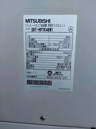 橿原市久米町 三菱電機CO2ヒートポンプ給湯機 貯湯タンクユニット SRT-HPTK46W1→コロナ自然冷媒CO2家庭用ヒートポンプ給湯機 ヒートポンプユニットCHP-DZ601K、貯湯ユニットCTU-46AZ1K エコキュート交換工事