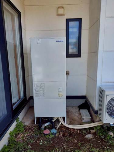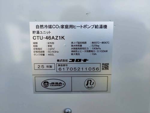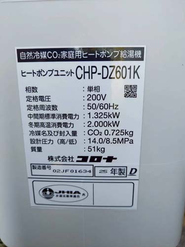 橿原市久米町 コロナ自然冷媒CO2家庭用ヒートポンプ給湯機 ヒートポンプユニットCHP-DZ601K、貯湯ユニットCTU-46AZ1K エコキュート交換工事|奈良エコキュート取り付け工事センター