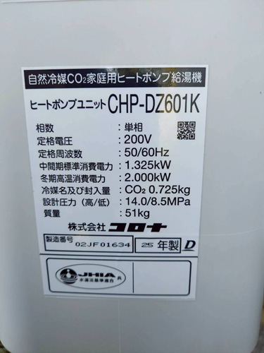 三菱電機CO2ヒートポンプ給湯機貯湯タンクユニットSRT-HPTK46W1→コロナ自然冷媒CO2家庭用ヒートポンプ給湯機ヒートポンプユニットCHP-DZ601K、貯湯ユニットCTU-46AZ1K エコキュート交換工事